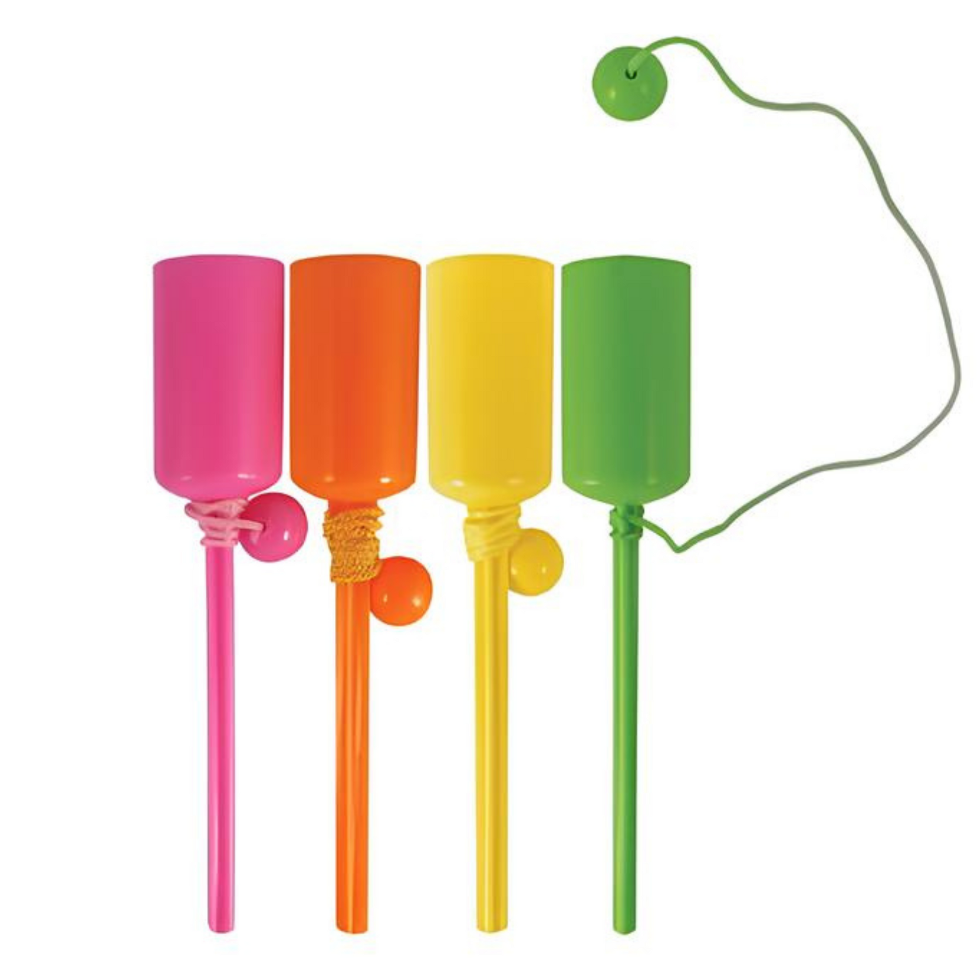 These traditional cup and ball games make ideal party favours, lucky dip prizes and loot bag fillers. They are also great for hand-eye coordination and are perfect for both indoor and outdoor games. Size: 13cm. One supplied, colour sent randomly.