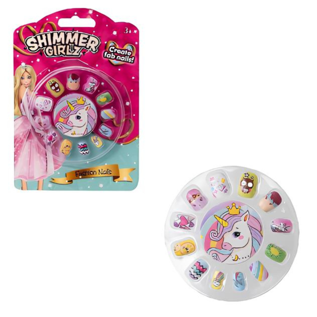 Transform your nails with the Fashion Nails Set from Shimmer Girlz. Easy to apply and available in fun, unique designs, these faux nails are perfect for kids. With 12 pieces specifically designed for smaller nails, they're sure to fit perfectly. Get ready to show off your stylish new look. Suitable for ages 3 years and up.
