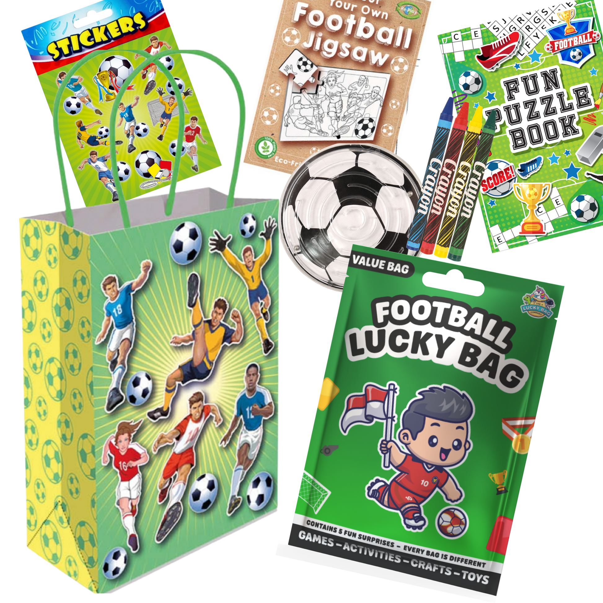 Check out our amazing new pre-filled party bags! This football bundle comes with an awesome football themed party bag, accompanied with a football themed activity pack which includes 5 fun football themed toys and activity sheets, wax crayons and a free football themed activity sheet. Super easy for parents planning a children's birthday party.