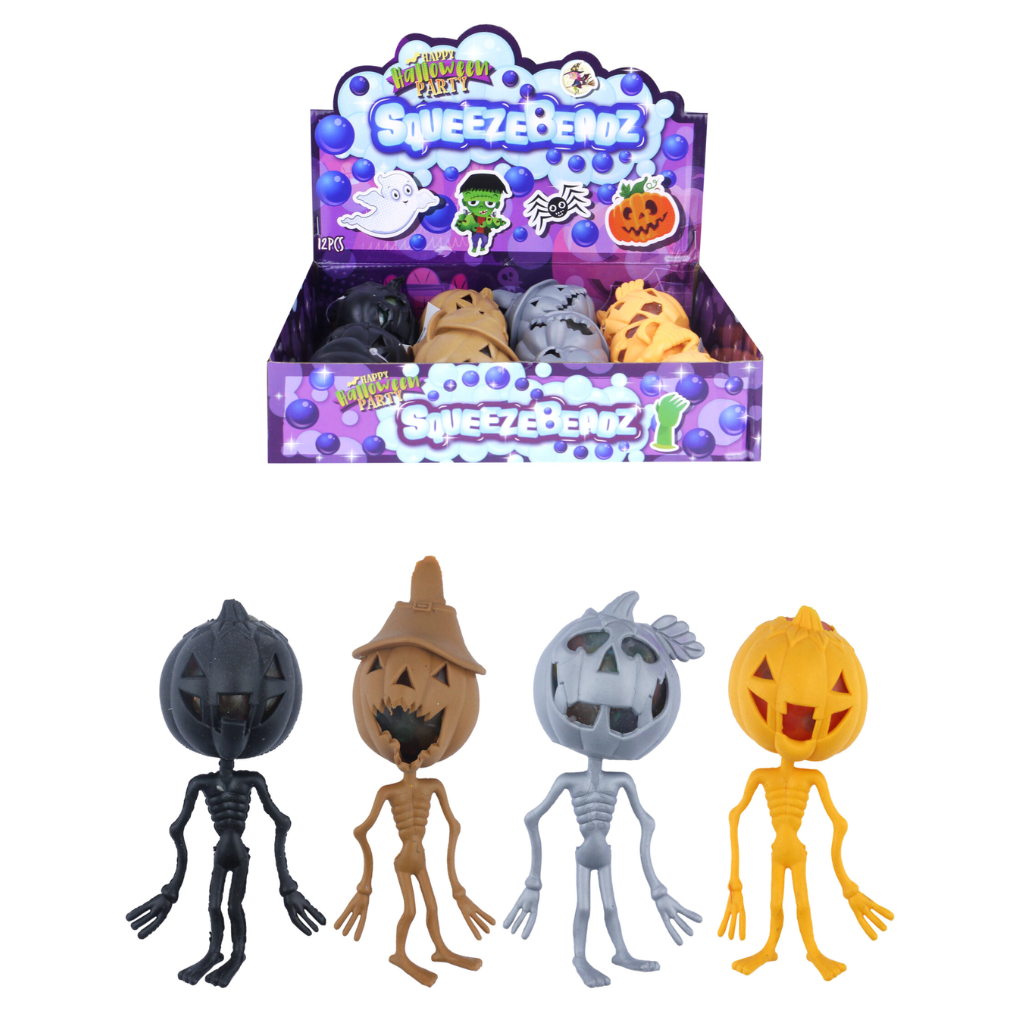 Introducing the Squeezy Pumpkin Skeleton - the perfect party favor or gift for any children's Halloween party! These 14cm skeletons come in 4 assorted colors and are filled with beads for added fun. Get yours today for a lucky dip surprise!