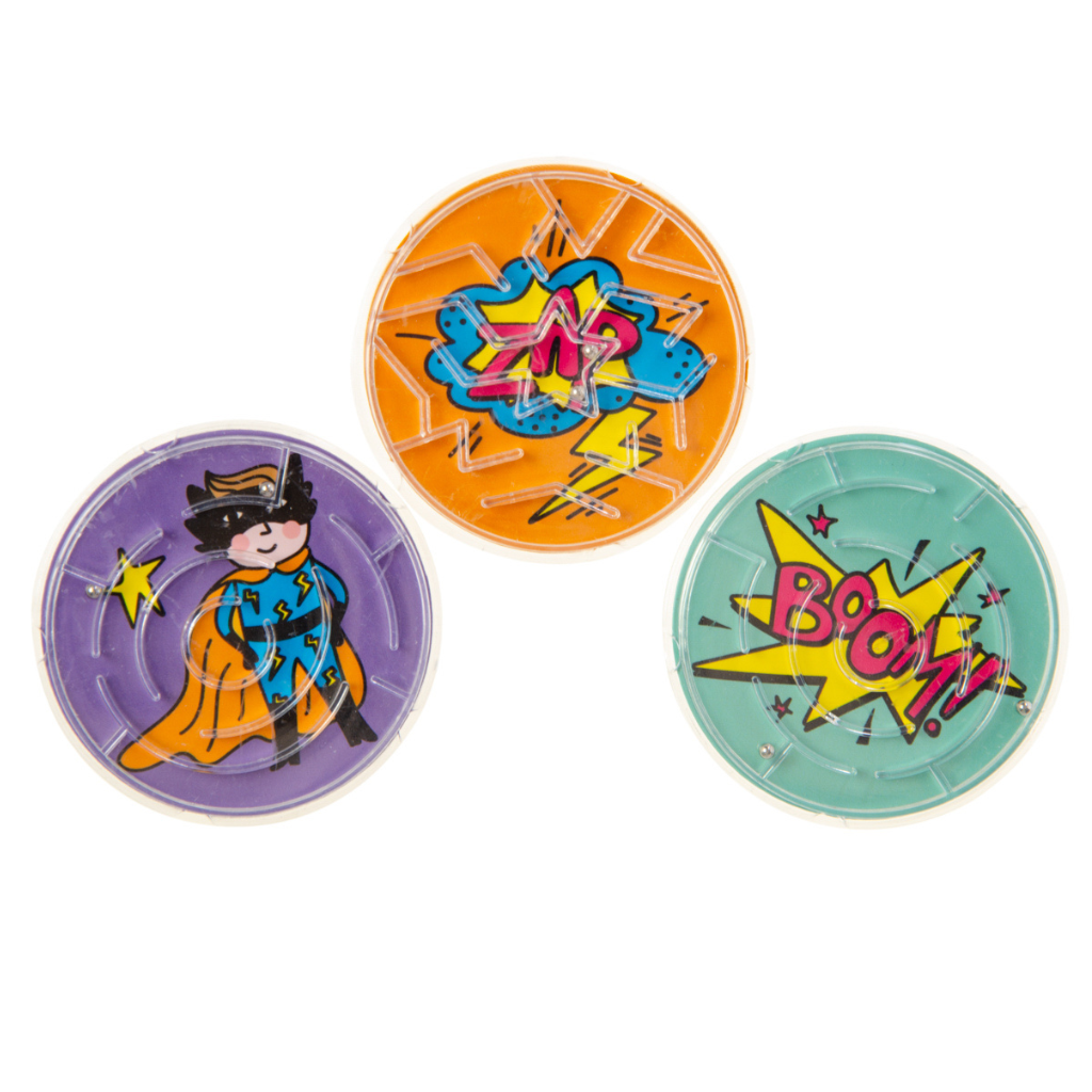 These mini superhero maze games are perfect for party bags or as fun little toys. Each pack includes one maze game featuring a randomly selected superhero design, adding an element of surprise and excitement. Kids will enjoy navigating the twists and turns while imagining their favorite heroes in action!