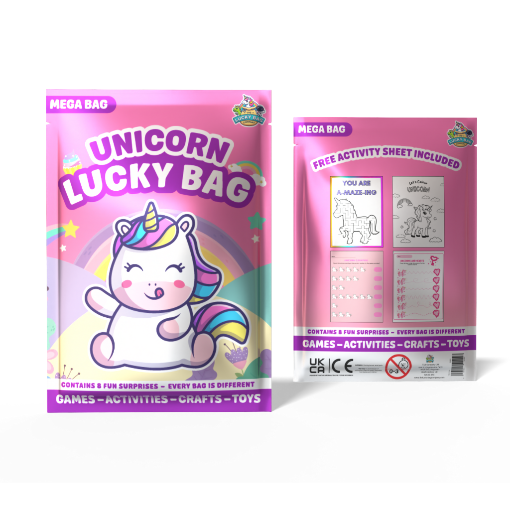 Dive into a world of magical surprises with our Unicorn Mega Lucky Bag! Packed with enchanting unicorn-themed treasures, each bag is bursting with colorful goodies to delight any child. Perfect for party favors, gifts, or simply bringing a sprinkle of rainbow magic to someone special's day. The excitement of discovering what's inside makes this lucky bag an adventure in itself!