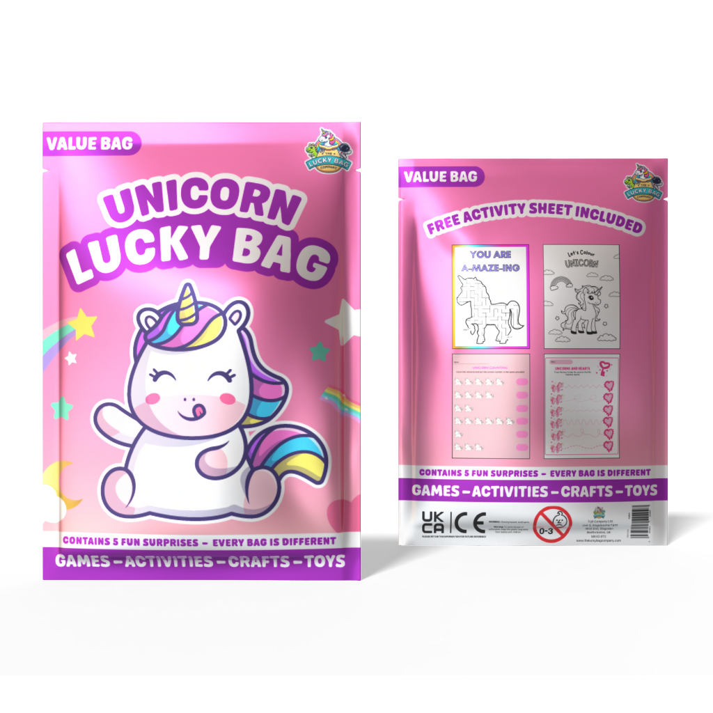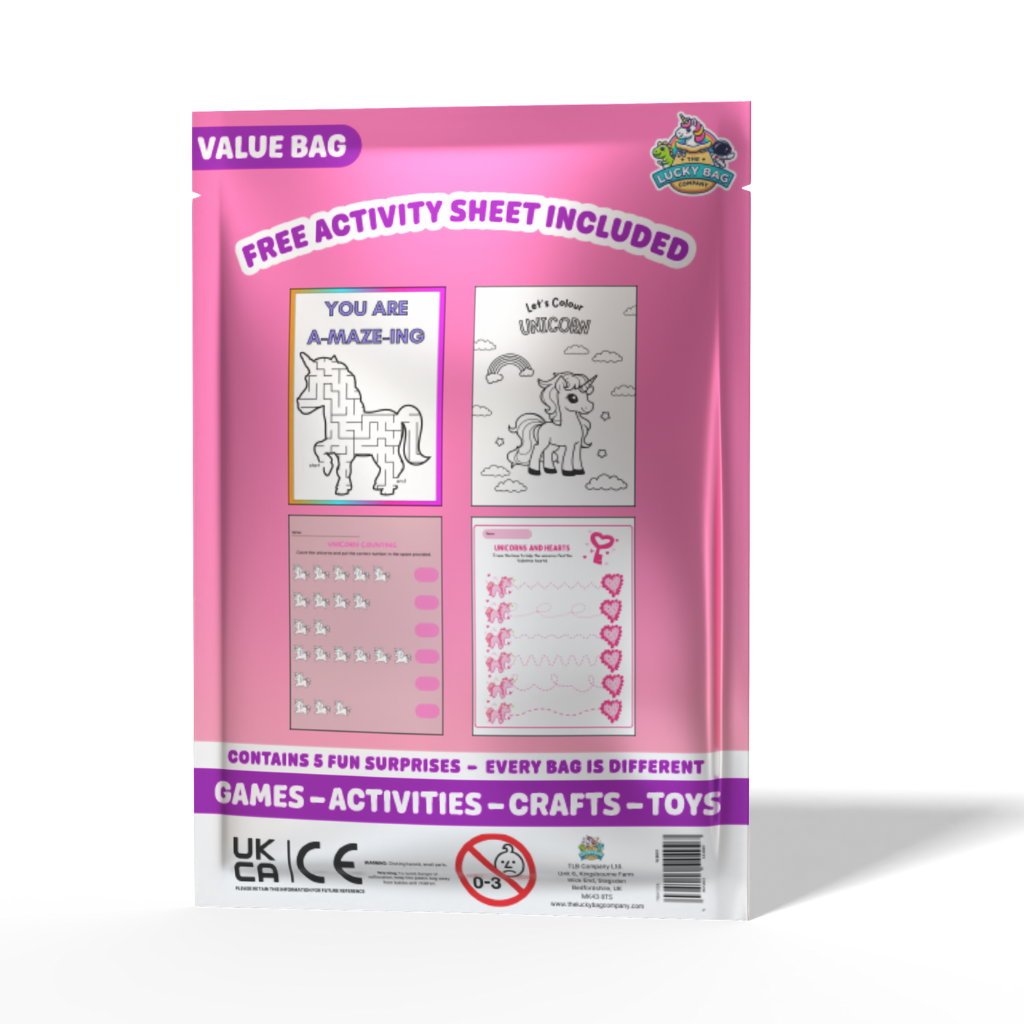 Surprise and delight with our Unicorn Value Lucky Bag! Packed with magical unicorn-themed treasures, each bag contains a mystery assortment of colorful goodies that will make little faces light up with joy. Perfect for party favors, rewards, or just because – it's a rainbow of fun at an excellent price!