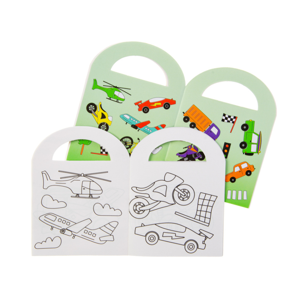 Get ready for some coloring fun with our Vehicle Colouring Book! Perfect for on-the-go entertainment, this book comes with a handle and stickers for added creativity. With pages of vehicles waiting to be filled with color, it's the ultimate party bag filler. Grab one now and let the coloring adventure begin! One book supplied.